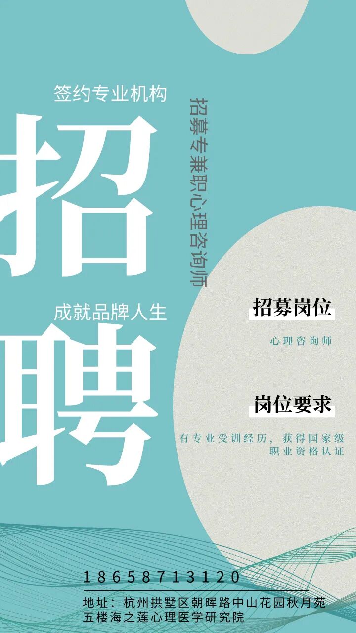 2024重磅:杭州心理咨询治疗中心招募专兼职心理咨询师,签约21年专业品牌机构2
